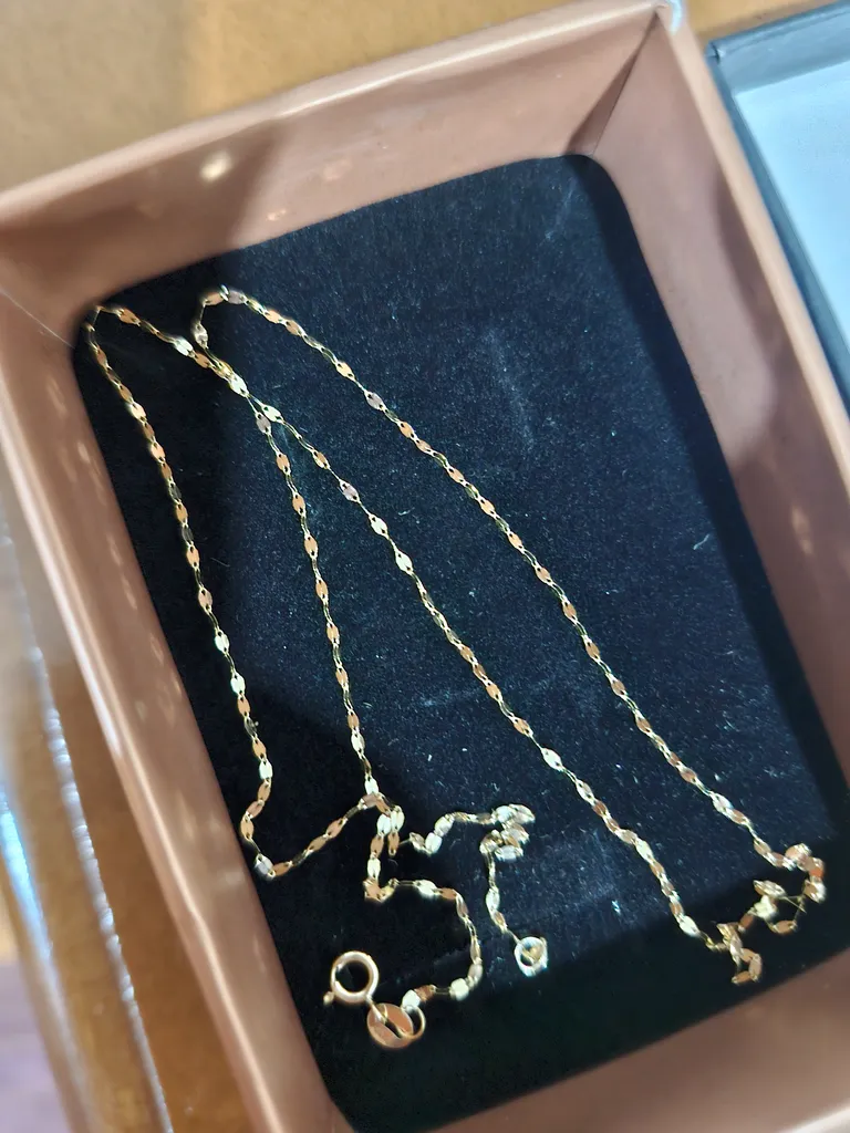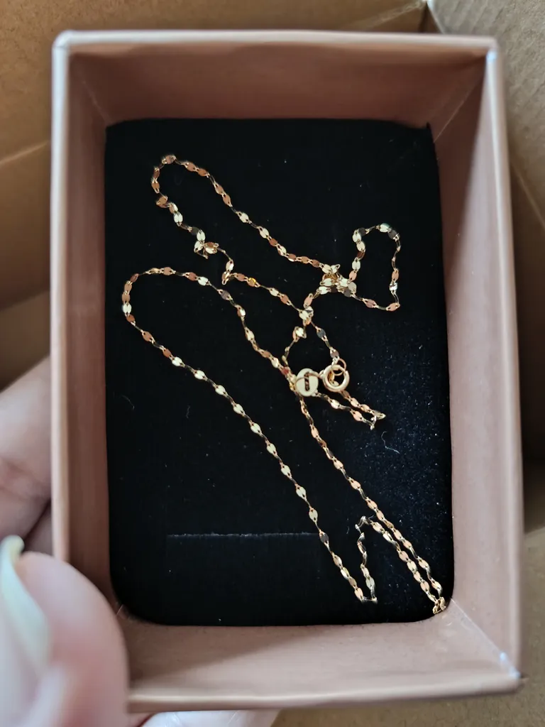 - ⬤ زنجیر طلا زنجیری : این نوع زنجیر به دلیل طراحی ساده و کلاسیک خود، مورد توجه بسیاری از خریداران قرار گرفته است. آنها به راحتی در استفاده و تطابق با انواع لباسها اشاره کردهاند. با این حال، برخی از خریداران از وزن کم و نازکی این زنجیرها شکایت کردهاند و احساس میکنند که به قیمت آنها نمیخورد. زنجیرهای زنجیری به دلیل سادگی و زیبایی، میتوانند به عنوان یک انتخاب مناسب برای استفاده روزمره و همچنین مناسبتهای خاص در نظر گرفته شوند.