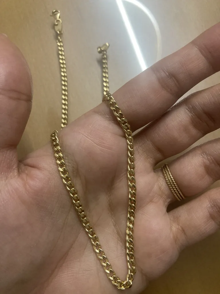 - ⬤ زنجیر طلا حلقهای : این نوع زنجیر به دلیل طراحی ساده و کلاسیک خود، مورد توجه بسیاری از خریداران قرار گرفته است. آنها به راحتی در استفاده و تطابق با انواع لباسها اشاره کردهاند. با این حال، برخی از خریداران از وزن کم و نازکی این زنجیرها شکایت کردهاند و احساس میکنند که به قیمت آنها نمیخورد. زنجیرهای حلقهای به دلیل سادگی و زیبایی، میتوانند به عنوان یک انتخاب مناسب برای استفاده روزمره و همچنین مناسبتهای خاص در نظر گرفته شوند.