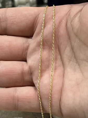 زنجیر ظریف و زیبایی هست . بااین وزن و قیمت کاری بهتر از این آیتم طنابی اونم از گالری مستجابی نمیتونید پیدا کنید . بسته بندی شیک و فاکتور مهرخورده و معتبر . منکه خیلی دوستش داشتم