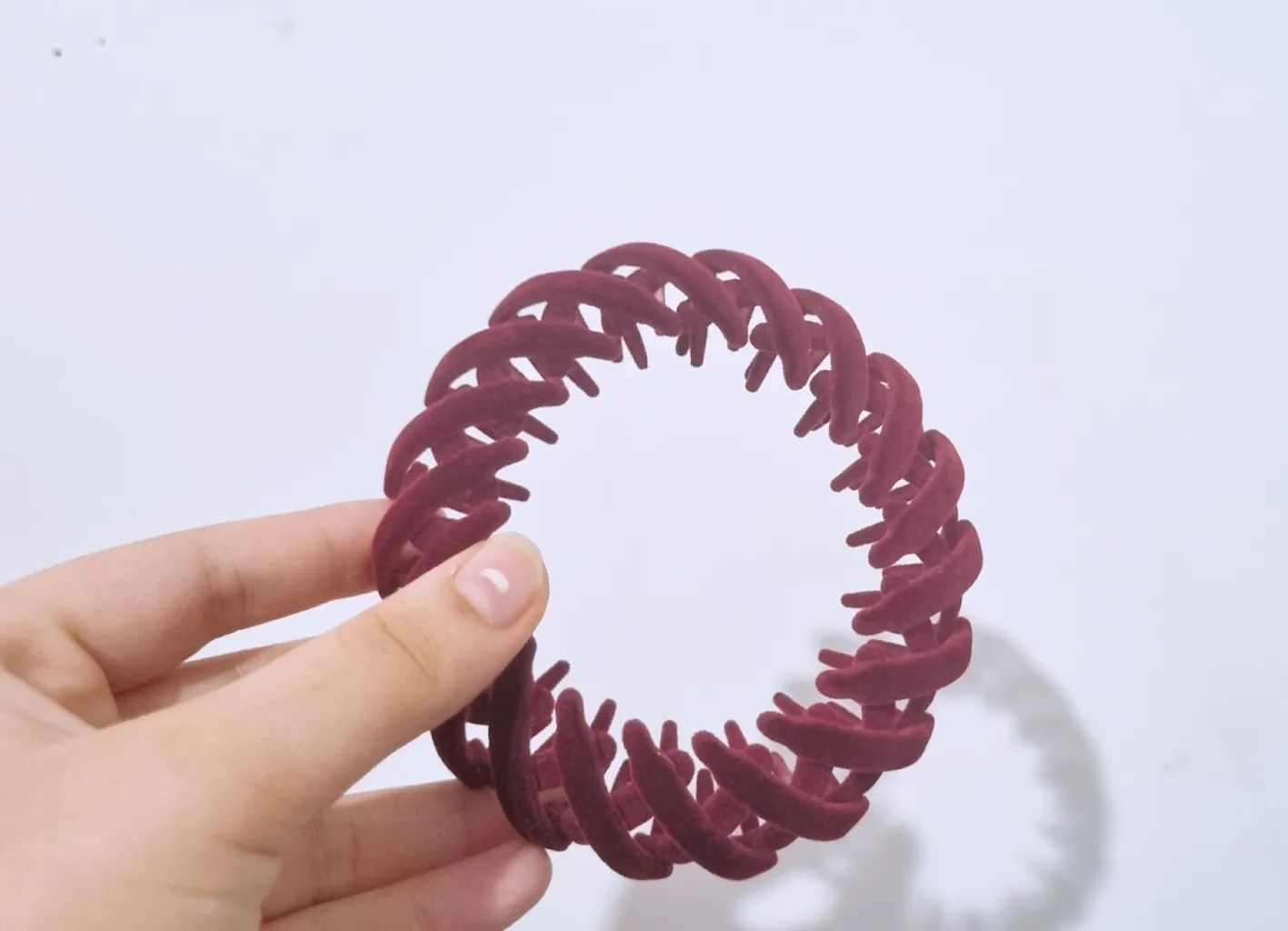 وقتی که به دستم رسید، استفاده اش کردم احساس میکردم هیچ کلیپسی روی سرم نیست و خیلی احساس راحتی کردم و از لحاظ ظاهر عالی و انگار شنیون کردی و خوش دیده میشه. رنگشو هم نسکافه ای سفارش دادم، و مخملی هم هست و برای موهای نیمه پر پشت خوبه. به هرحال با این کلیپس سردرد نمیگیرم