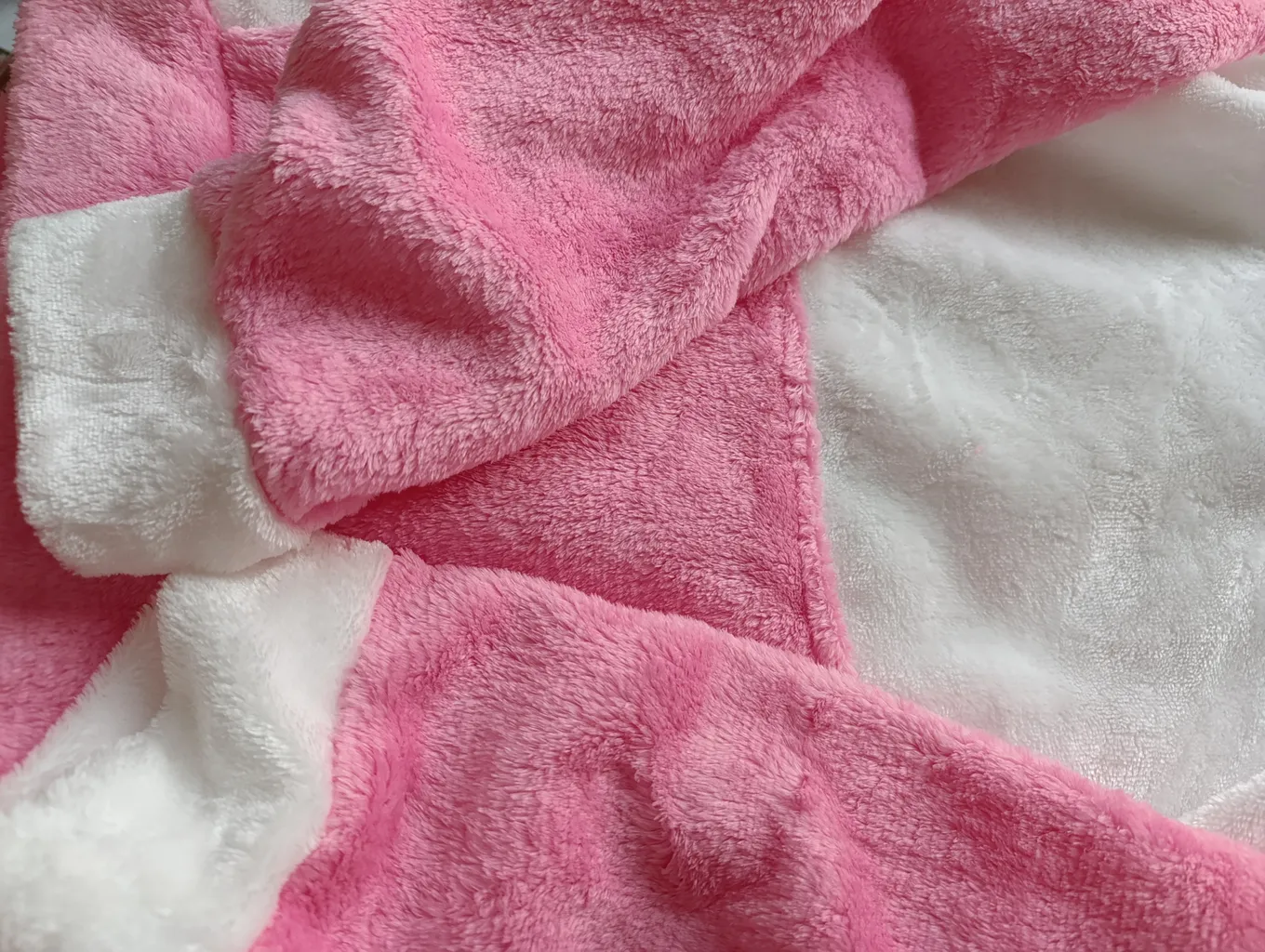 دوستان توجه کنید که پارچه صورتی یک رو هستش و داخلش نرم نیس اما قسمت های سفید دوروعه. رنگش از عکس صورتی تره و جنس پارچه صورتی پلاستیکیه و بوی بدی میده. عکسشو گذاشتم امیدوارم کمکتون کرده باشه