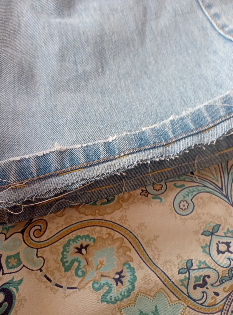 جای دوخت شلوار روشکافتند تا قد کوتاه شلوار رو جبران کنه ولی حتی نخ های اضافی حاصل از شکافتن رو جمع نکردن.جای شکافت هم تماما سوراخ سوراخ هست و به همراه ریش ریش های قسمت پایین پاها خیلی نمای زشتی ایجاد کرده...