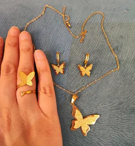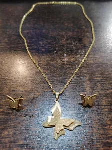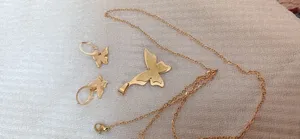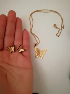ست پروانه ؛ من خودم انگشتر و دستبند این مدل رو داشتم وقتی این ست رو سفارش دادم کامل شد ولی زنجیرش زرده اونم مشکلی نداره