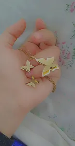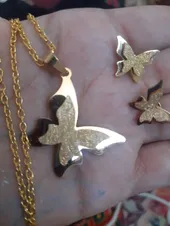 نیم ست پروانه ؛ خیلی خوشگله فقط برای من مدل پلاکش فرق میکرد اول خورد تو ذوقم ولی خیلی مشکلی نبود دوستش دارم..عکس پلاکش رو میزارم ببینید