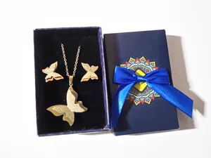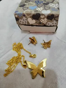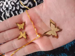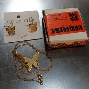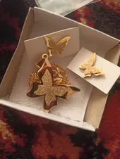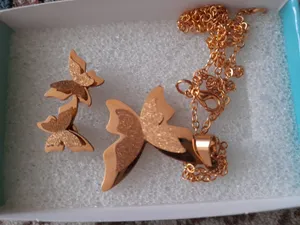 نیم ست پروانه ای ؛ در کل ازش راضی بودم.من واسه هدیه خریدم.جعبه اش اصلا جالب نبود و جعبه دیگه ای گرفتم.بسته بندیش اما خوب بود.قفل گوشواره ها محکم بود.واقعا قشنگه و میارزه.خیلیم زیبا و دوست داشتنی هستش