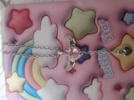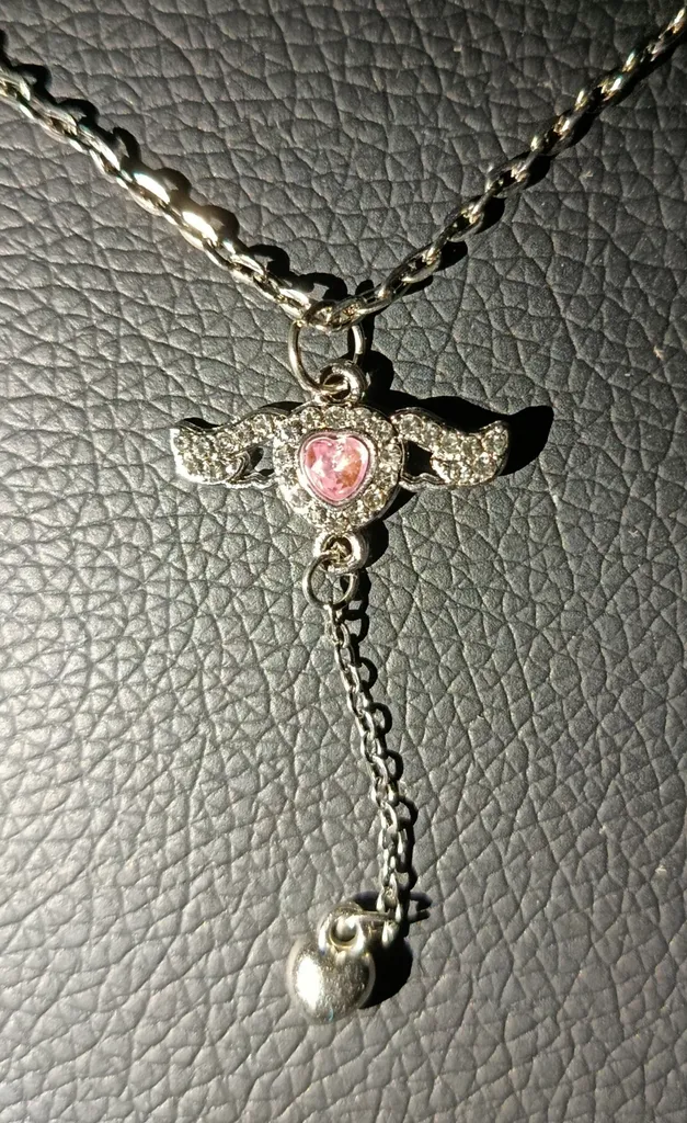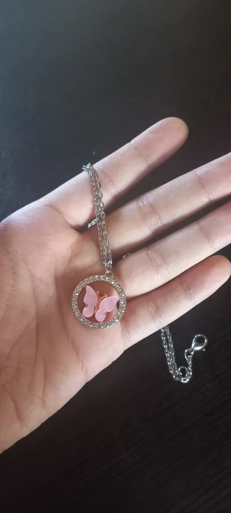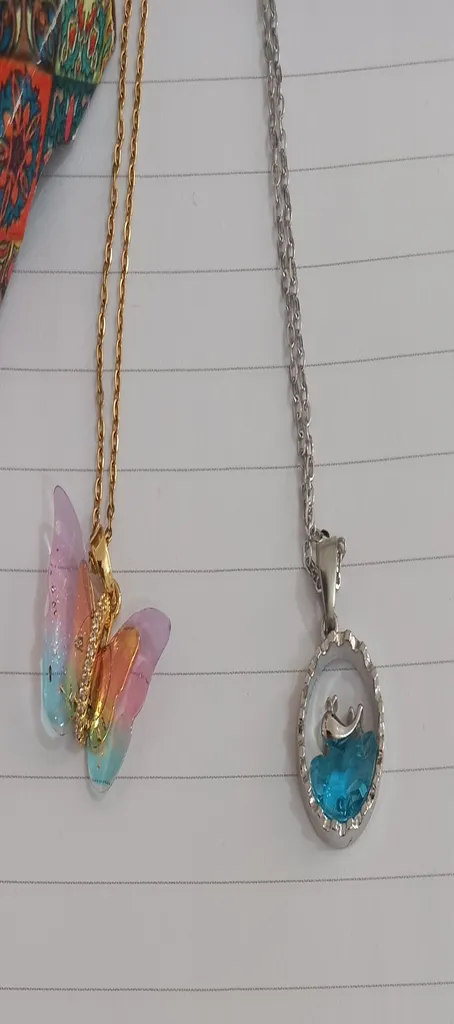 گردنبند خیلی ناز کیوتیه مال من رنگ صورتی بود و با نگین کاری های ظریف دورش واقعا جلوه ی زیبایی داره حتما بخرید بهتون پیشنهاد میکنم