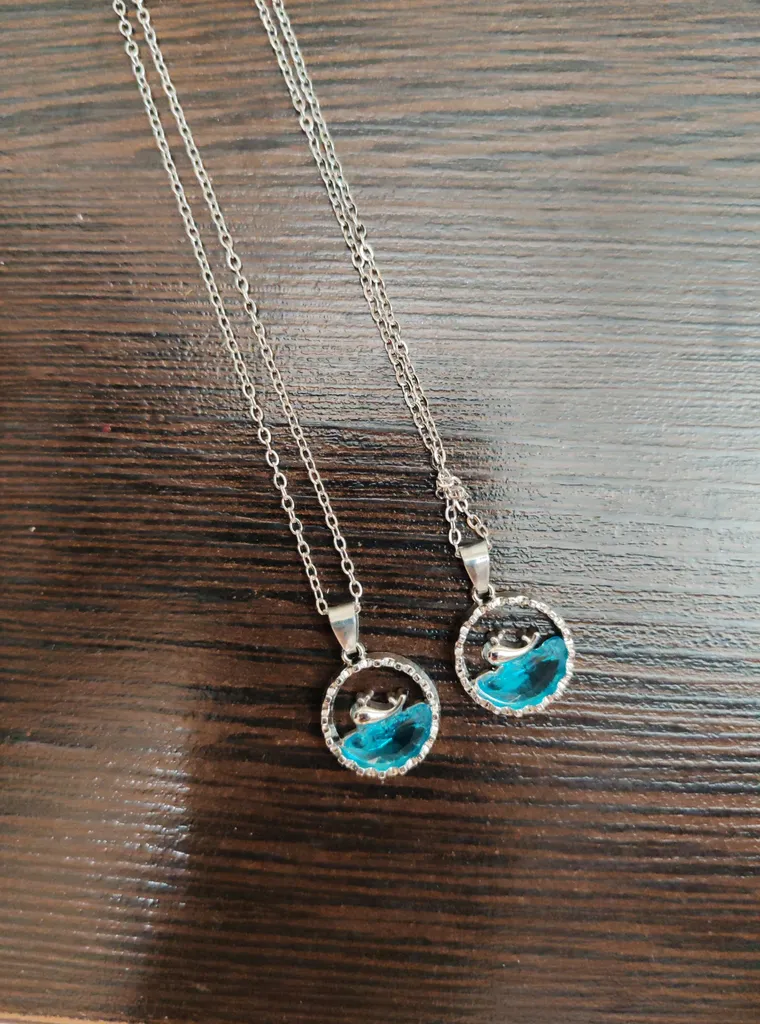 • زهرا حاتمی : گردنبند وال و دریا ؛ سلام من امروز این گردنیند به دستم رسید خیلی خوشگله خودم عاشقش شدم تو مدرسه هم دوستام کلی ازش تعریق کردن قیمتشم خیلی مناسب بود در کل ارزش خرید داره عاشقش شدم خیلی کیوته.🤩🤩🥰😍عکس گذاشتم براتون ولی جعبه نداشت خودم گذاشتم تو جعبه اونجور دوستان عکس گذاشتن شکلات نداشت بسته بندی شکلی هم نداشت ساده گذاشته بود تو پلاستیک زیپ دار