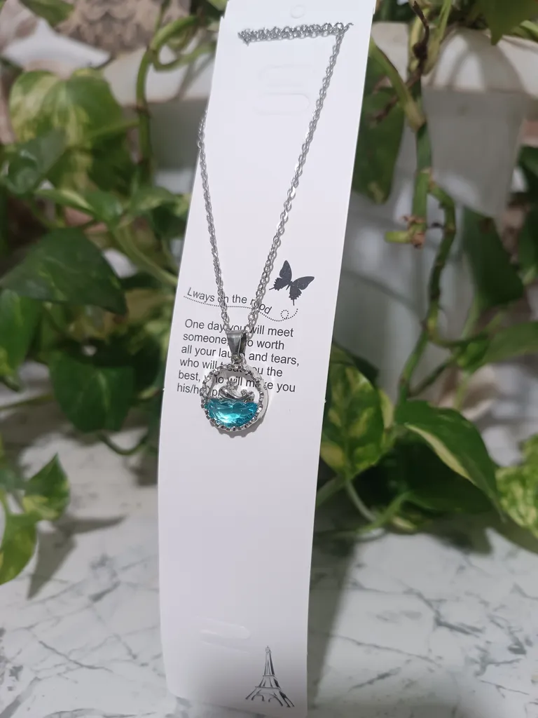 خوشگله زنجیر نازکی داره اما کیفیت قفل مطلوب نیست و ارزان قیمته. من دو تا سفارش دادم یکی نقره آبی و دیگری آبی هیچ تفاوتی با همدیگه ندارن به جز اینکه نقره آبی گرون تره!!