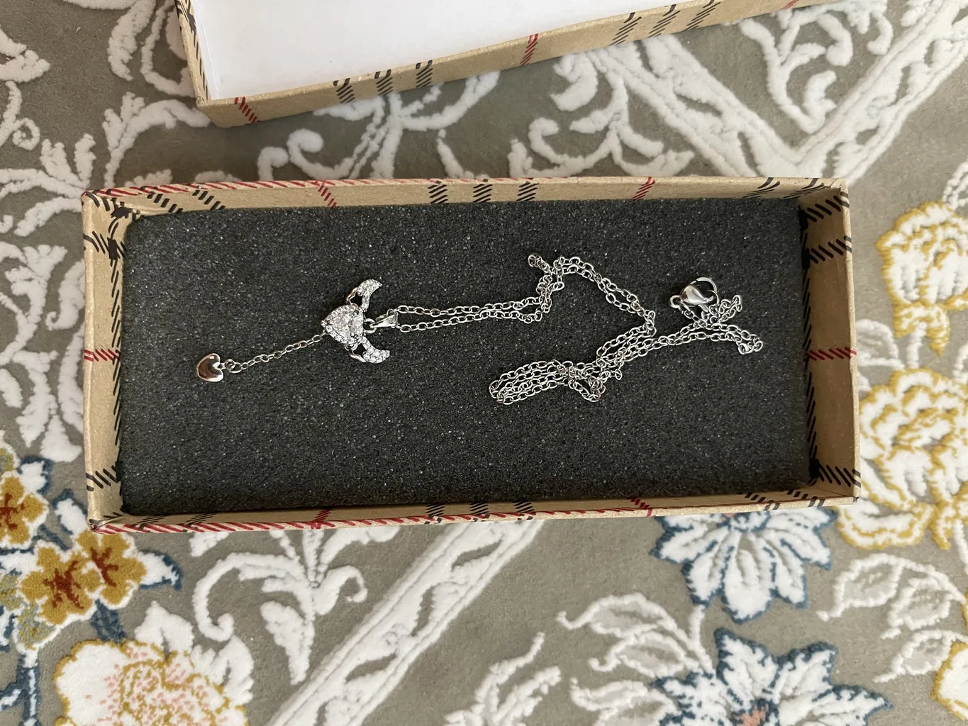 خیلی خوشگل بود فقط زنجیرش گره خورده بود و جعبهش شبیه عکسش نبود
