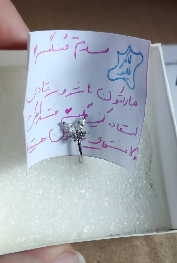 سوگنر عزیزمحمدی : قشنگ ترین پرسینگیه که تاحالا دیدم فروشنده ام با سلیقه داهل جعبه یادداشت گزاشته بود