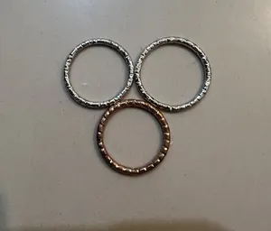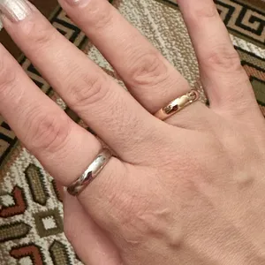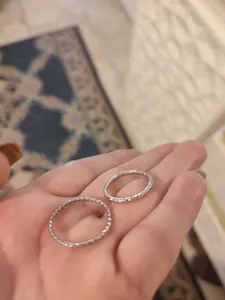 خریدار بدون نام : از این مدل دوتا سایز 7 و 8 سفارش دادم که سایز 7 کاملا اندازه است ولی سایز 8 خیلی بزرگ هستش، رنگ نقره ای واسه من فرستادن البته موقع خرید گزینه ای واسه رنگ طلایی یا نقره ای نبود و مثل اینکه کلا رنگ نقره ای فقط داشتن، در کل ارزش خرید داره جنسش محکم و مقاومه و زیباست، هرچند من رنگ طلایی میخواستم ولی نقره ایشم دوست داشتم، هردوتا رینگ رو کنار یه رینگ طلایی که قبلا خریده بودم گذاشتم میتونید اندازه هاشون رو ببینید