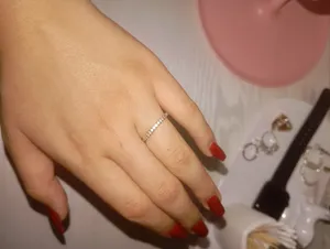 بسیار زیبا با نگینهای ظریف .بسیار شبیه طلا سفید.قیمت مناسب.ضد حساسیت هست .سایز هم دقیق بود