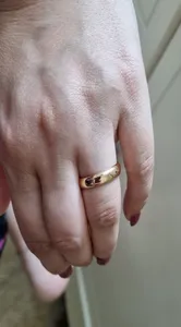 دوستان خواهش میکنم عکسهایی که گذاشتم رو با دقت ببینید و گول ظاهر این انگشتر رو نخورید، من یکی سفارش دادم وقتی اومد دیدم وای چقدر شبیه طلاست و از اونجایی که مارک ژوپینگ داخلش حک شده بود اطمینان حاصل کردم و یکی دیگه سفاش دادم، اما بعد از یک هفته استفاده بدون اینکه داخل هیچ مواد شوینده یا اسیدی بذارم و حتی برای حمام درش میاوردم خیلی زووود لکه های خاکستری به خودش گرفت و رنگش رفت!! انگار که پول دوتا انگشترو دور ریختم. اگه از این بدل دست فروشیا خریده بودم رنگش بیشتر میموند!!
