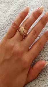 خیلی جذاب و کیوت هست من خوشم اومد دوتا رینگ ساده و ظریف داره ویکی نگین دار من هرسه باهم تو انگشت حلقه انداختم قشنگ شده