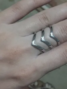 از این مدل دوتا سایز 7 و 8 سفارش دادم که سایز 7 کاملا اندازه است ولی سایز 8 خیلی بزرگ هستش، رنگ نقره ای واسه من فرستادن البته موقع خرید گزینه ای واسه رنگ طلایی یا نقره ای نبود و مثل اینکه کلا رنگ نقره ای فقط داشتن، در کل ارزش خرید داره جنسش محکم و مقاومه و زیباست، هرچند من رنگ طلایی میخواستم ولی نقره ایشم دوست داشتم، هردوتا رینگ رو کنار یه رینگ طلایی که قبلا خریده بودم گذاشتم میتونید اندازه هاشون رو ببینید
