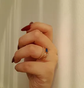 بسیار انگشتر زیبا و شیکی هستش نگین هاش کوچک تر از عکس هستش ولی از عکسی هم که اپلود کردم زیباتر و از نزدیک جلوه بیشتری داره هرکی دیده پسندش کرده سایز هم خودتون میتونید تغییرش بدین و امیدوارم رنگش هم ثابت باشه