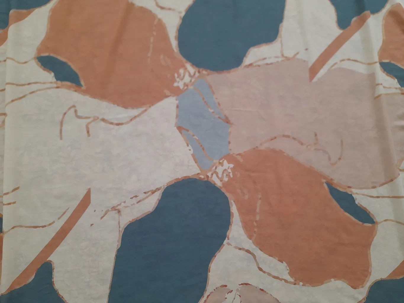 روسری طرح برگ ؛ سبک، نخی، بزرگ، شاد و به بیشتر مانتوها با رنگهای مختلف، میخوره. ابعاد روسری ۱۳۵ سانت در ۱۳۵.