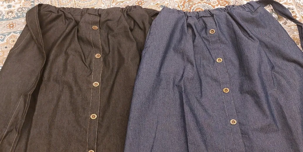 هر دو رنگش رو خریدم دوخت خوبی داره و جنسش هم خوب به نظر میرسه پنج تا دکمه داره که تزئینیه و پاپیونش هم باز میشه روی دامن هیچ سایزی نزده من اندازه خودم گرفتم که مناسب بود کمر دامن کشیه قدش بلنده و دو تا جیب هم داره