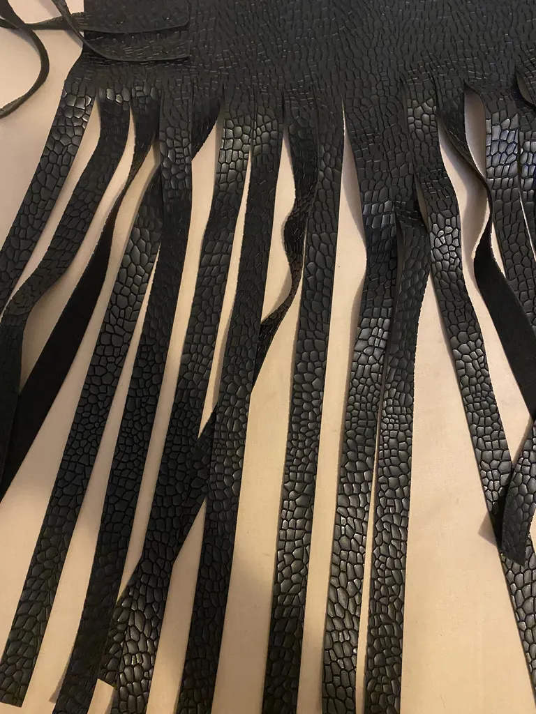 این دامن کاملا با چیزی که برای من فرستادن مغایرت داشت ریش ریشیاش پهن تر و تراکم کمتری داشت و جنس چرمش پوست ماری بود که من اصلا دوست ندارم ولی مدلش خیلی خوشگل و خاص هست برای همین مرجوع نکردم درضمن هر سایزی هستید یه سایز بزرگتر بگیرید