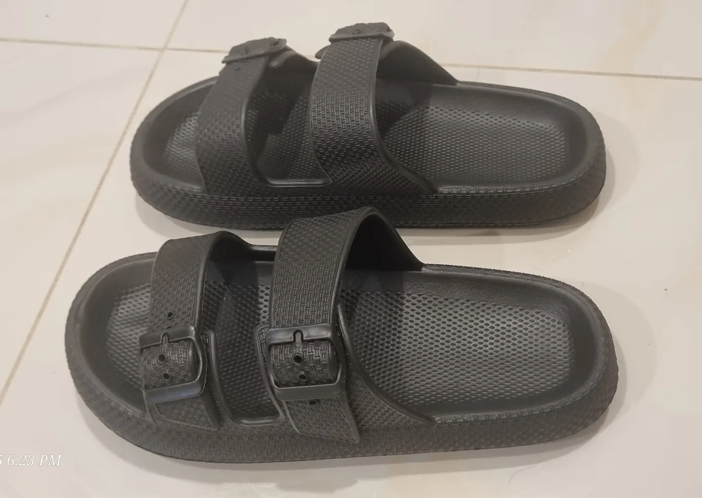 دمپایی به شدت خشک بود به طور کلی جنسش ضعیف بود و اتصالاش به زیره بی کیفیت بودن،رویه دمپایی از کناره ها پارو میزد.برعکس چیزی که در تصاویر رسمی هست گل های روش سه رنگ نیستن و فقط زرد و سفیدن و رنگ زمینه رویه دمپایی به جای سفید زرد هست.همچنین برخلاف عکسهای رسمی در زیر کفی دمپایی اسم برند نیکتا به طور برجسته حک نشده بود.و حتی در زمان تحویل اتیکت نیکتا رو هم نداشت.کاملا فیک به نظر میاد،از وهامان خریدم