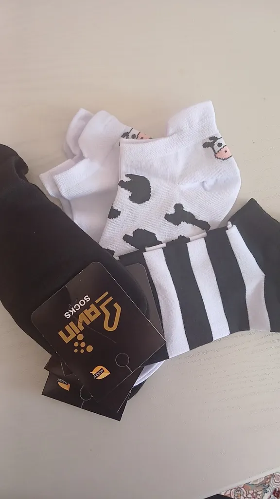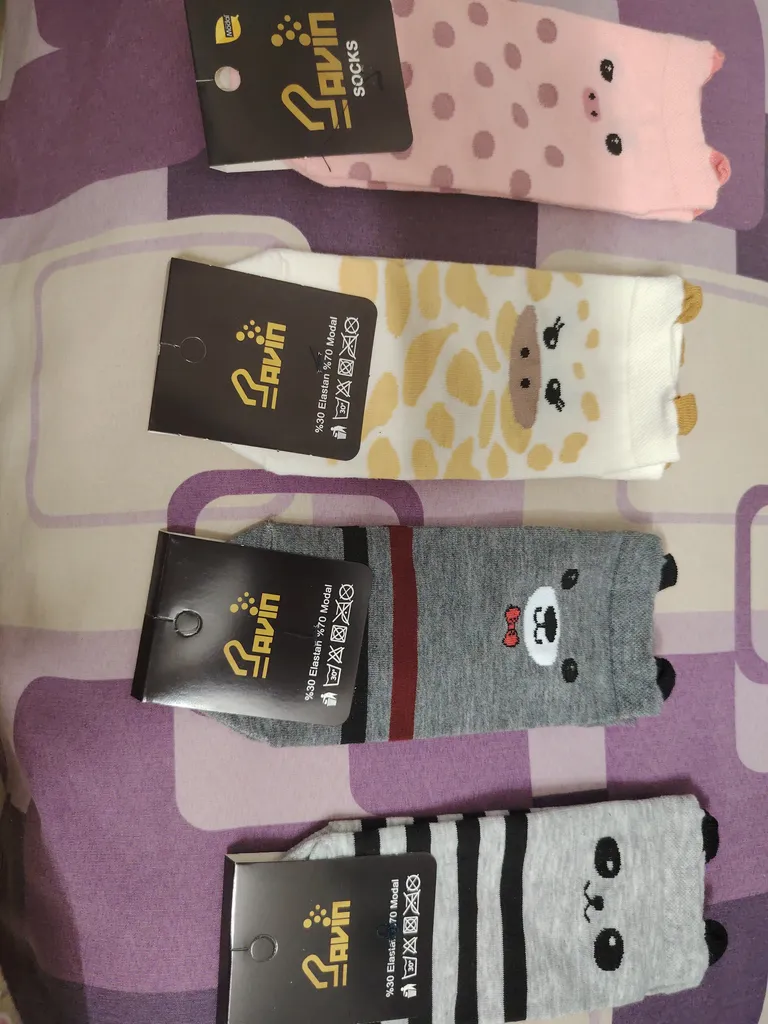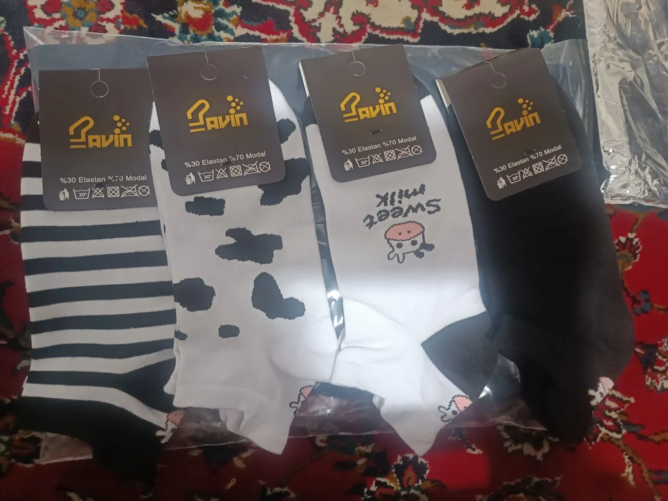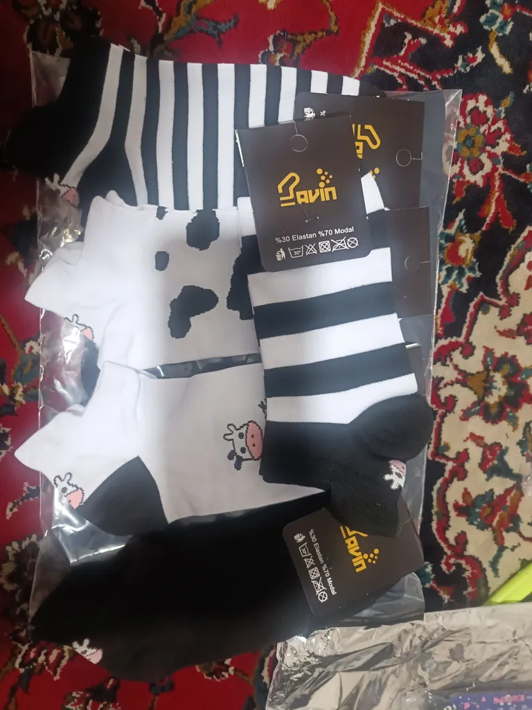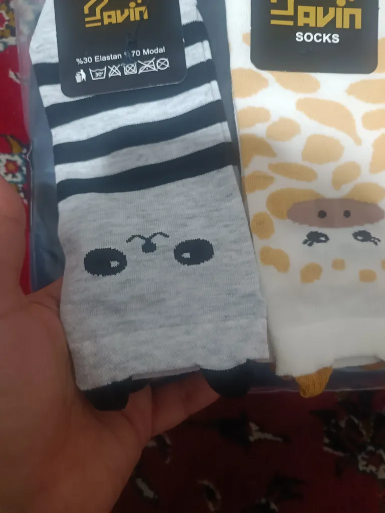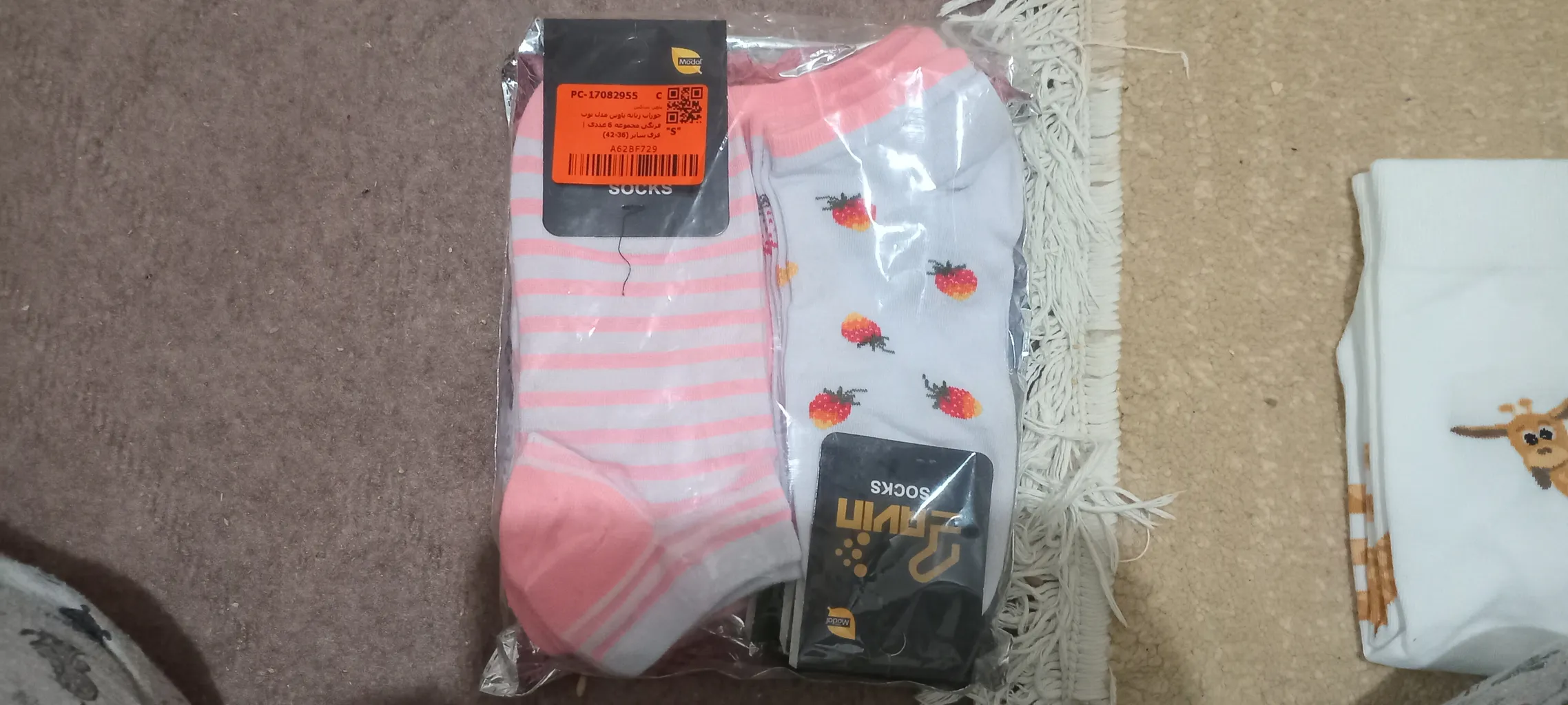 اعظم پاک سرشت : جوراب های خوبین کش،خوبی داره ،،جنس جوراب خوبو محکمه، وقیمتش عالیه، ،،،فقط مارک روی کاغذ جوراب ها فرق داره ،اما جورابها همون هستن که برای بقیه خریداران ارسال شده، ،عکس سه جفت از جورابها را گرفتم، یکیشون را دخترم پوشیده،