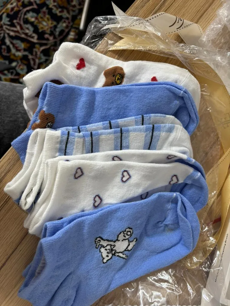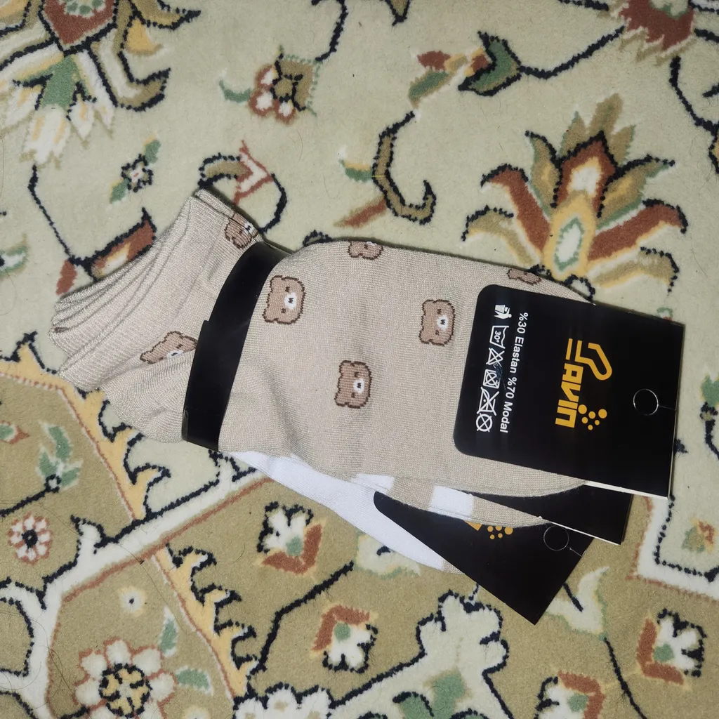 محیا تبریزی : جوراب خرسی پنج عددی ؛ خیلی خوشگلو گوگولیه جنسشم عالیه ۵ تاشو خریدم هشتادو خورده ای ولی از همینا بیرون دونه ای بگیری حداقل ۵۰ تومن هست. همیشه جورابامو جینی از دیجی کالا میخرم فقط تو عکس میخورد نسکافه ای رو به قهوه ای باشه ولی از نزدیک خاکیه رنگش که اتفاقا شیک ترم هست (یجوری دارم تبلیغ میکنم انگار فروشنده درصد سود قراره بده من)