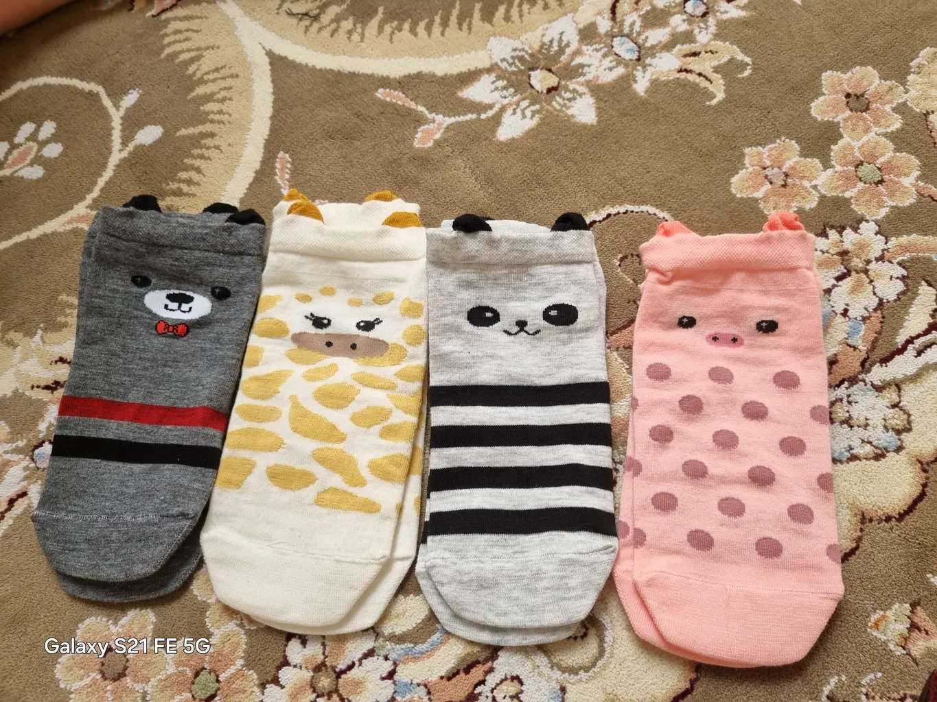 اعظم پاک سرشت : جوراب زنانه ؛ جورابهای خوبی بودن عکس سه جفت شو گرفتم ؛ ودو تا شو پوشیدیم ، واین چهار خونه ایی که خودم پوشیدم از بقیشون بهترو گرمتره ؛ویه خوبی که داره کشش نرمه مچ پام را اذیت نمیکنه ؛وشماره پای من ۳۸؛۳۹ هست وجوراب اندازه شد فقط یه خورده کوچولو بزرگه ؛ اما نه اینطوری که مشخص باشه وخیلی خوبه که رنگ سفید شو پسرم که شماره پاش ۴۳ هست پوشید واندازه اونم شد ویه عکس خرس کوچولوشو داد زیر پاش که معلوم نباشه زنانه هست خخخخخ خلاصه از شماره ۳۸ تا ۴۳ اندازه میشه 😊🙏
