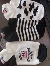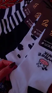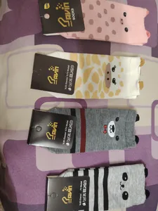 • من بعد از حدود یک ماه استفاده نظرمو میگم واقعاً نسبت به قیمت کیفیتش خوبه طرحش درست مثل عکسشه و خیلی بامزه ن یه کوچولو نازک تره نسبت به جورابای دیگه ولی اصلاً مشکلی نداره، سایزشم مناسب بود عکسشم گذاشتم و حتماً پیشنهاد میدم