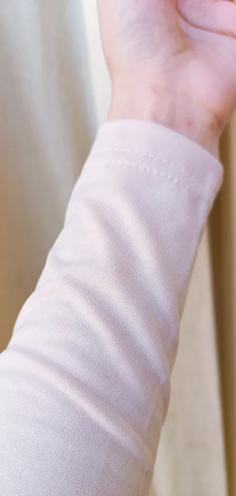 ینفر گفته بود بلند می خواسته ولی نبوده، ولی برای من دقیقا همونی بود که میخواستم از آرنج بالاتر هم می رفت و جنس خوبی داشت. تازه دو طرفش مچ کشی هم داشت که چفت بشه تو دستتون. عالیه