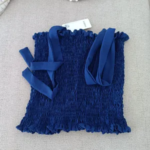 تاپ زنانه مدل بند گره ای رنگ آبی