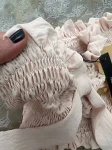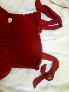 توی عکس ، قسمت چین دار پایین ، هم اندازه و حتی کمی بلندتر از قسمت کش دار بالا هست. چون قراره قد لباس تا روی کمر بیاد ولی لباسی که تحویل گرفتم قسمت پایینش نصف قسمت کشی هست! و همچنان کراپ تاپ محسوب میشه ولی من این مدلو خیلی دوست داشتم تنخورش اوکیه دیگه نگهش میدارم