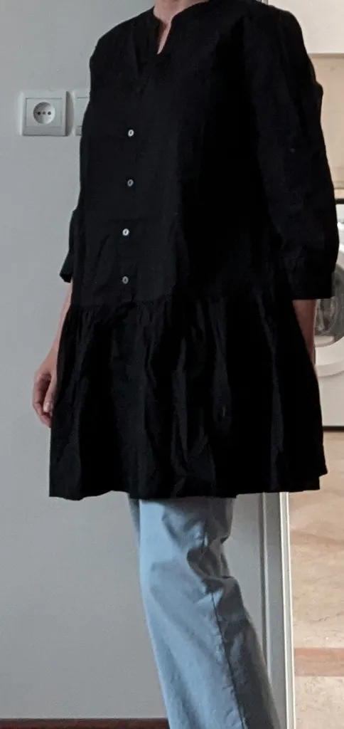 و دوم اینکه لطفا اگه کالایی مرجوع میشه از طرف مشتری اون رو بررسی کنید و درصورت نیاز بشورید بعد برای کس دیگه بفرستید من بازش ک کردم کلی مو به لباس چسبیده بود ،رد کرم پودر روی یقه لباس بود ، لکه آب روی لباس خشک شده بود ، اما چون دوسش داشتم نگهش داشتم و خودم میشورمش