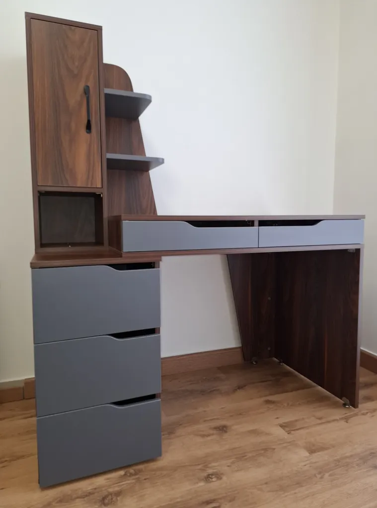 - ⬤ میز تحریر باکسدار : این نوع میزها دارای کشوها و قفسههای اضافی برای ذخیرهسازی وسایل تحریر هستند. خریداران از جادار بودن و طراحی کاربردی آنها راضی بودهاند، اما برخی به کیفیت یراقآلات و اتصالات انتقاد کردهاند.