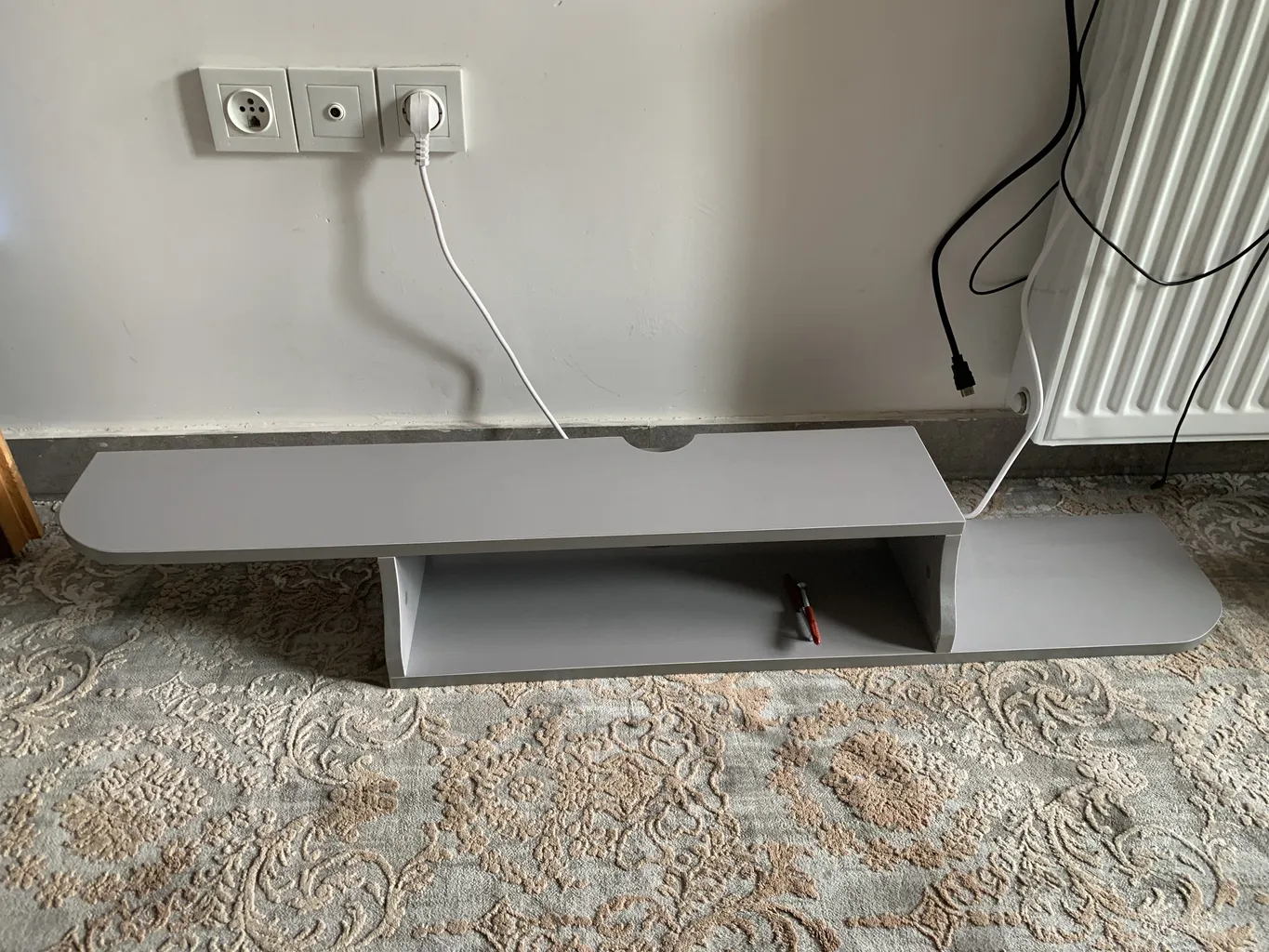 میز تلویزیون ؛ قشنگه، اما خیلی سنگین بود و با بست متصل نمیشد و پشتشو ام دی اف زدیم و متصل کردیم به دیوار. درکل زیباست