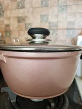 وقتی از دیجیکالا سفارش دادم ، خیلی خوب به دستم رسید و بنظر خیلی بادوام بود ...اما بعد از گذشت ۶ماه تمام تفلون کف قابلمه پوست پوست شد و هربار برنج دم کردم توش دونه های سیاه تفلون که کنده میشد تو برنجم بود که میگن خیلی برای بدن مضره. خلاصه که این برند و جنس ارزش خرید نداره میشد با همین هزینه قابلمه های روی جنس خوب گرفت و کاملا هم تمیز میشه...