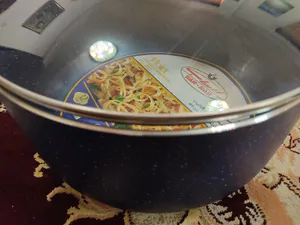 قابلمه ؛ جنس خوبی داره، اندازه ۳ ۴ نفره، من سه سایز ۱۶ ۲۰ ۲۴ رو خریدم و راضی ام، یکسال پیش ۲تا تابه ازین مارک ولی رنگ نوک مدادی گرفته بودم خیلی خوبن ولی این رنگ زرشکی کاملا داخلش کنده شده