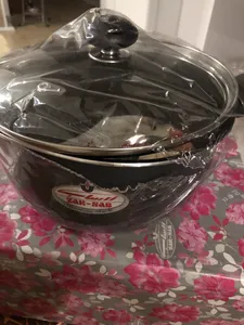 قابلمه زرساب ؛ قابلمه های زرساب واقعا ارزش خرید دارند وکیفیت مناسبی هم دارند .ولی این قابلمه سایزش کوچیکه و برای یک یا دونفرکافیه ومیتونه برای نگهداری مازاد غذا استفاده بشه .من ازخریدم راضی هستم وکاملا تمیز ودرپک خود برند زرساب ارسال شد.فقط نسبت به سایزش قیمتش بالاست!