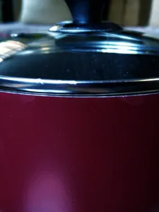 فقط تنها نقطه ضعفش اینکه که درب قابلمه لبش کم ه و اگر قابلمه یک کم کج بشه درب از روش سر میخوره که من مواظبشم حین کار. در واقع درب کیپ نمیشه روی قابلمه!