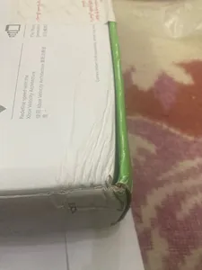 تو نگاه اول ک رسید دستم دورشو با یک نایلون ضخیم بسته بودن ک مثلا ضربه نخوره ،، نایلوناشو ک کندم رسیدم ب جعبش خورد تو ذوقم چون ضربه خورده بود و سالم سالم نبود عکساشو گذاشتم