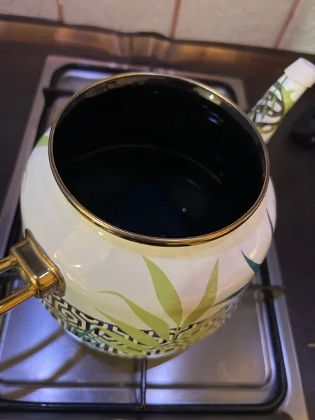 به مرور لعاب داخل کتری می ره به طوری که پس از یکسال زنگ زدگی کاملا مشخص هست و آب پس از جوشیدن به رنگ آجری متمایل می شه و حتی می شه ذرات آهن رو در آب دید