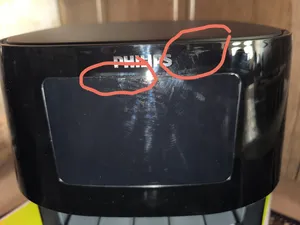 سرخ کنی که بدستم رسید توی کارتنی بود که حتی برای اداره پست نبود کارتون وصله شده بسیار ضعیف و پاره بود و اما بعد از باز کردن دیدم سقف بالای سرخ کن رنگ پریدگی داره اونم چند جا انگار قبلا مصرفی بوده یا تعمیری یا شایدم پشت ویترین بوده به هر حال مثل جنس مصرفی و دست دوم بود که بالای سرخ کن رو با مواد شوینده انگار شسته بودن و کلی رد اسکاچ یا چیزی که باهاش پاکش کرده بودن روش بود روی بدنه یک تار مو بود با کثیفی های زیاد زیر بدنه هم بسیار کثیف بود با گردهای سفید و گرد و خاک فراوان در بدنه و زیر دستگاه هر جای کلا پر از ایراد و اشکال در ظاهر دستگاه بود