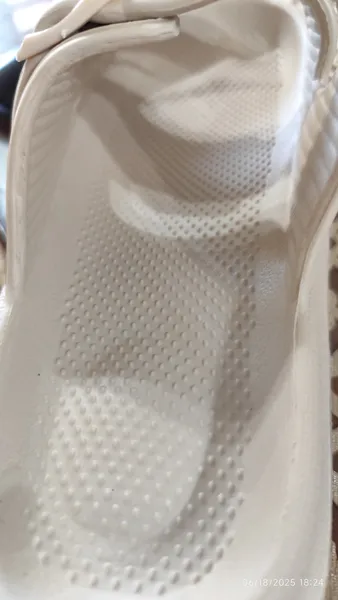 کف دمپایی اینطوری خارداره یه خورده پا رو اذیت میکنه کیفیتش خوبه، اولش بوی پلاستیک میداد ولی بعد رفع شد. طبی و خیلی راحتی نیست ولی در کل خوبه