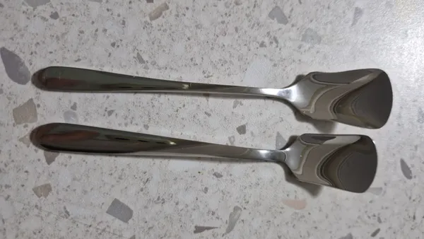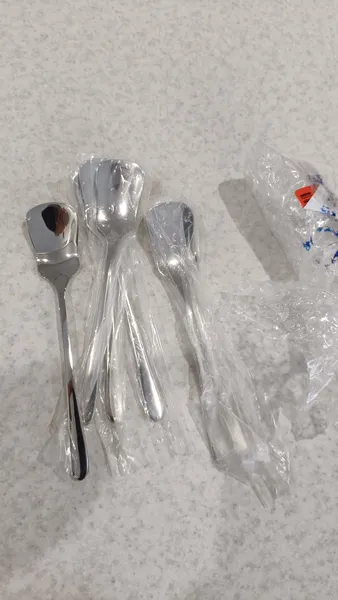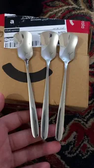 قاشق بستنی خوری ؛ خیلی قشنگ و با کیفیته، من 6 بسته 6 عددی گرفتم در مجموع 36 تا، خیلی ازش راضیم خوش دسته جنسشم عالیه