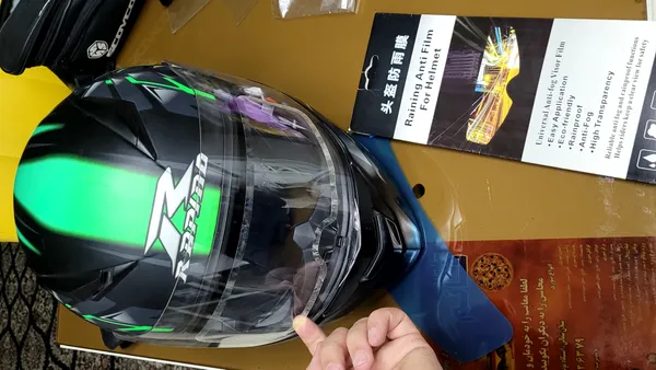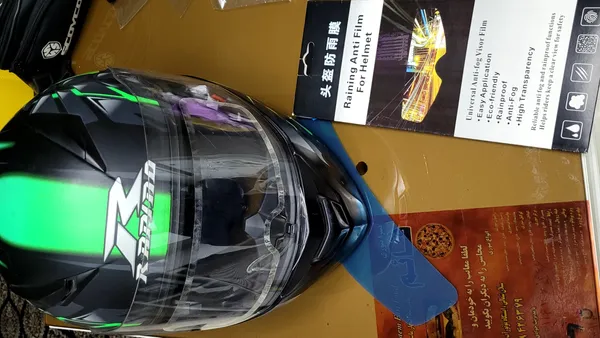 جنس بی کیفیت و فیک ؛ بعد از ۲ دقیقه استفاده وسط خیابون پارش کردم و انداختم دور !!! متاسفانه فقط جلد محصول قابل قبول بود که اونم درش باز بود و هیچ چسبی نداشت. خود محصول هم یک تلق فیک بی کیفیت که عکسش رو گذاشتم. اندازه یک انگشت کامل میره زیر تلق ( این کار مخصوص روی شیشه است که برابر مقاومت در مقابل بارون و عوامل خارجی، لطفا دوستان از خودشون مدل در نیارن وگرنه چه معنی داره برچشب رو داخل کلاه کاسکت آدم بزنه !!!!)