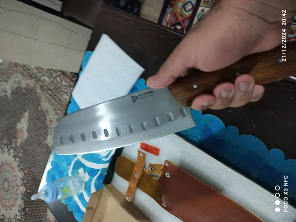 بسیار زیبا و خوش دست تیز تیز مانور پذیری خوبی داره برای آشپزخانه عالیه بسته بندی عالی حتی برای هدیه دادن همراه با غلاف چرمی طبیعی