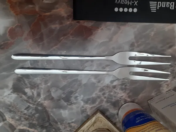 سلام و وقت بخیر چنگال مرغ دقیقا همون چیزی بود که مد نظرم بود از نظر سایز هم هردوعدد یک سایز بودن اما یدونه از چنگال ها آسیب دیده بود و دارای دون دون های ریز بود اگر برای مشتری ارزش قائل بشید و جنس بدون مشکل بفرستید مطمئنا افراد بیشتری خرید اینترنتی رو ترجیح میدن ؛ سلام و وقت بخیر چنگال مرغ دقیقا همون چیزی بود که مد نظرم بود از نظر سایز هم هردوعدد یک سایز بودن اما یدونه از چنگال ها آسیب دیده بود و دارای دون دون های ریز اما زیاد بود اگر برای مشتری ارزش قائل بشید و جنس بدون مشکل بفرستید مطمئنا افراد بیشتری خرید اینترنتی رو ترجیح میدن
