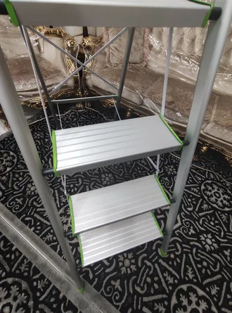 عالی و لازم برای هر خونه ؛ هیچکس چیزی ننوشته بود من طبق عکسا خریدم واقعا عالیه ، بسیار سبکه پسر هشت ساله من راحت جابجاش میکنه جنس کاملا باکیفیت و اتصالات قوی داره جای پا عرض سیزده سانت داره که عالیه ، چون بقیه نردبان های آلمینیومی با این سایز کف پله بسیار گرانتر هستن تا 150کیلو وزن تحمل میکنه من با قد 165 روی پله چهارم سرم مماس با سقف میشه کم پله تر نگیرید ،چون هرچی بالاتر میره پله جمع تر میشه ، این سایز عالیه تشکر از فروشنده ، خوده نردبان بسته بندی و وکیوم داست ، دوباره حسابی پیچیده بودنش داخل حبابدار من واقعا راضی ام