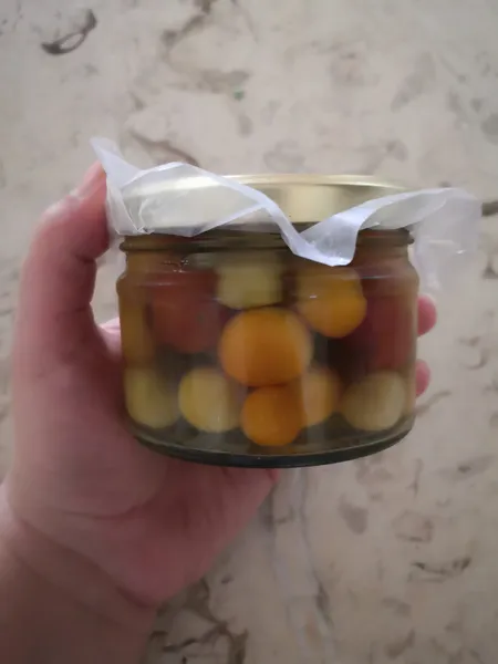 آموزش ؛ دوستان عزیز این گوجه های گلخانه ای مثل محصولات معمولی نیستن و حتما برای گرده افشانی باید خودتون با یک خلال دندان یا قلم موی نقاشی نازک به صورت دستی هر روز گلهای جدید را گرده افشانی کنید تا ثمر بدن من اهوازام آبان(البته دیر بود) 5تا بذر را کاشتم یکیش رشد کرد و تا فروردین محصول خوبی داد ولی ناگهان دچار آفت شپشک آردآلود شد و چون میخواستم محصولم ارگانیک باشه سم نزدم و گرمای اردیبهشت اهواز اون را از بین برد بچه ها انقدر از دیدن گوجه ها خوشحال بودن که من هیچ عکسی از گوجه های رسیده روی بوته ندارم فقط چندتا گوجه آخر رو که از آفت نجات داده بودم ترشی کردم و نگه داشتم