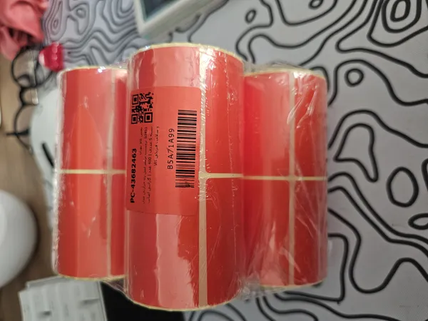 با دیدن سفارش از تعجب شاخ درآوردم اصلا با عکس محصول همخوانی نداره رنگ نارنجی کمرنگ رول ب اندازه انگشت شست نازک و کم هست در صورتی که تو عکس قطر لیبل ۵۰میلیمتر گفته شده مرجوع میکنم