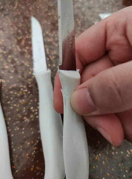 با اینکه بسته بندیش پلمپ بود ولی چرک و کثیفن. کیفیت ساخت هم خیلی بد. ولی تیزن. چاقویی که قبلا خودم داشتمو گذاشتم
